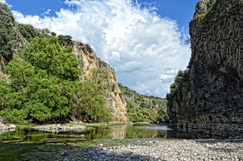 Kula – Salihli UNESCO Global Jeoparkı'nda vadileri dolduran lavların Gediz nehri ve kolları tarafından parçalanması sonucu toplam uzunluğu 20 kilometreyi geçen volkanik kanyonlar oluşmuştur. Bunlardan en karakteristik olanları Şöğütçayı üzerindeki Evciler Kanyonu ile Gediz nehri üzerindeki Dereköy Kanyonu ve Adala Kanyonudur. Bu kanyonlarda meydana gelen yerel çökmelere bağlı olarak şelaleler oluşmuştur. Bunlardan en meşhuru 25m düşüşe sahip Adala Kanyonunda bulunan Su Uçtu Şelalesidir.